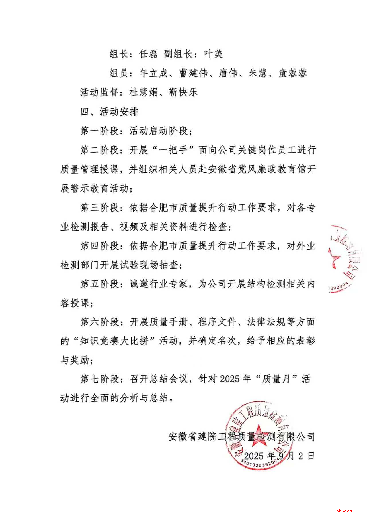 9月5日,公司進(jìn)一步對(duì)2025年“質(zhì)量月”活動(dòng)作出全面細(xì)致的部署和安排。活動(dòng)共分為7個(gè)階段,包括質(zhì)量管理專題培訓(xùn)、質(zhì)量警示教育、內(nèi)部自查自糾、外業(yè)檢測(cè)現(xiàn)場(chǎng)抽查、專家專題講座、質(zhì)量知識(shí)競(jìng)賽等內(nèi)容。通過這一系列豐富多樣的活動(dòng),將全方位、多層次地強(qiáng)化公司的質(zhì)量管理工作,提升整體檢測(cè)水平。